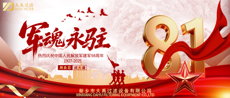 建軍節不僅是軍人的節日,更是全社會學習軍人精神、凝聚奮進力量的時刻。新鄉市大禹過濾設備有限公司將以軍人般的堅韌與執著,持續以“良芯”鑄就精品,為全球工業高質量發展貢獻“中國芯”力量。未來,公司將繼續以客戶需求為導向,以技術創新為引擎,在過濾領域書寫新的輝煌篇章!